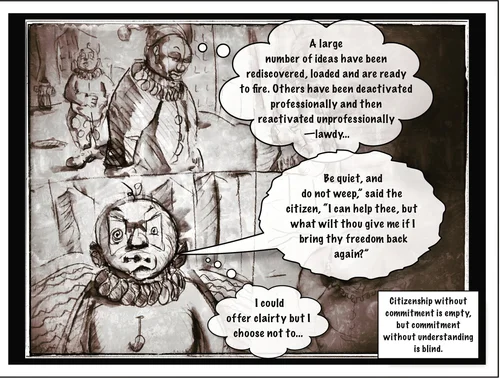 “The New Adventures of Spatchcock Jones.”— A political allegory. Intro page layout. Text reads: This is a tale of woe, of loss, of sadness and of anger.